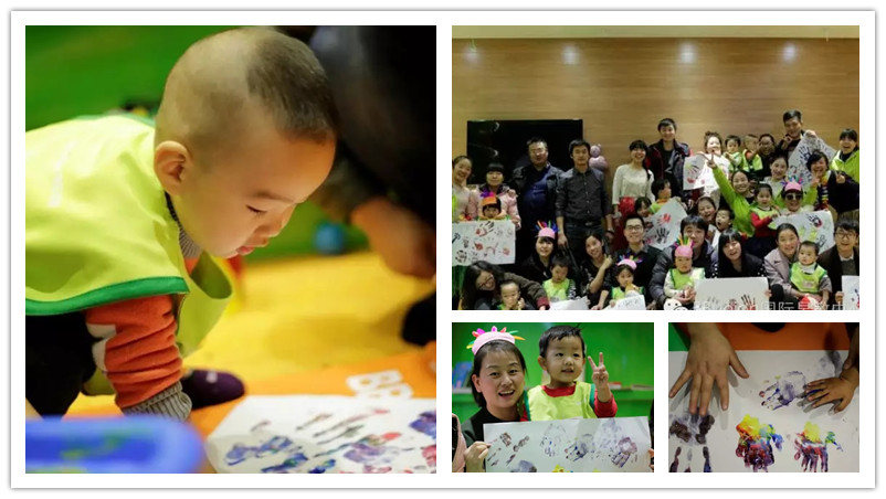 小朋友们开始创作啦,妈妈爸爸的大手和宝宝的小手作出一副幸福温暖的画吧!